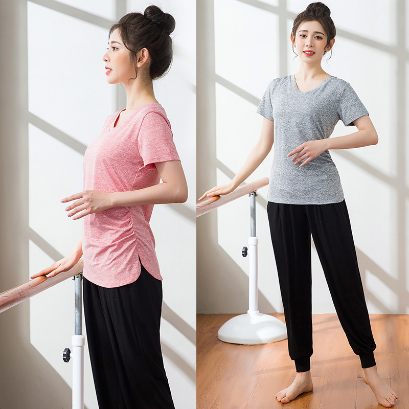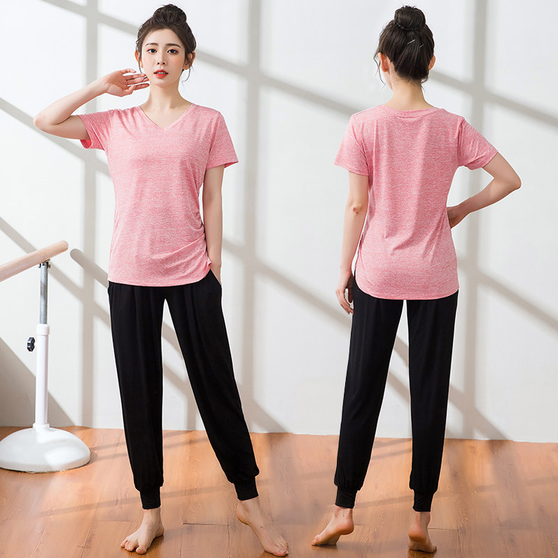 Yoga Suit Woman Spring Summer Loose Light Cage Pants Speed Dry Sports Fitness Short Sleeve Suit Gym Gym Running Jump