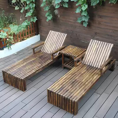 Outdoor balcony lounge chair outdoor courtyard solid wood wooden home leisure bed garden villa swimming pool beach chair