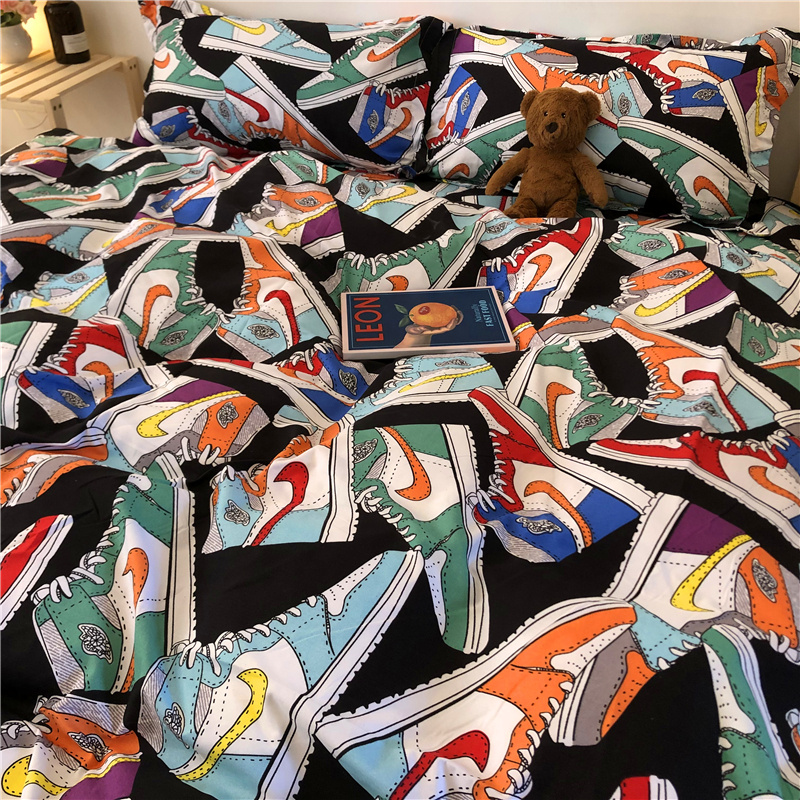 Net red ins Chains xx Eye bed Bedding Four Pieces Black Quilt Cover Bed Linen Men's Dorm Room Single Three