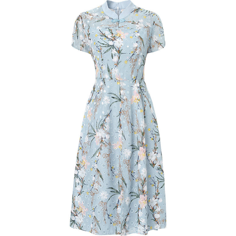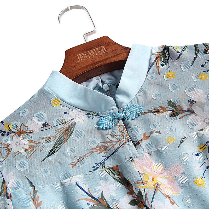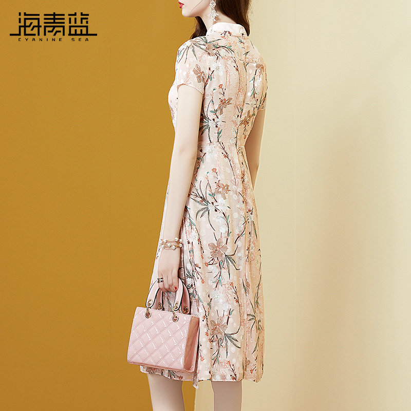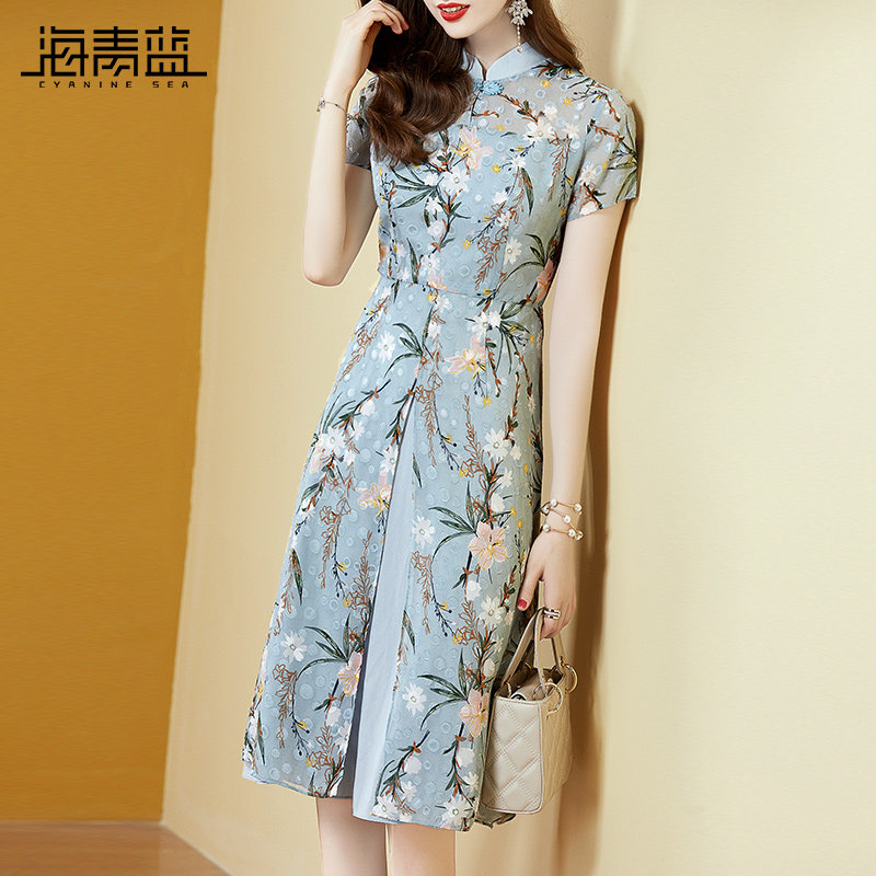 Haiqinglan improved cheongsam dress summer 2022 new temperament waist thin printed skirt female 26012
