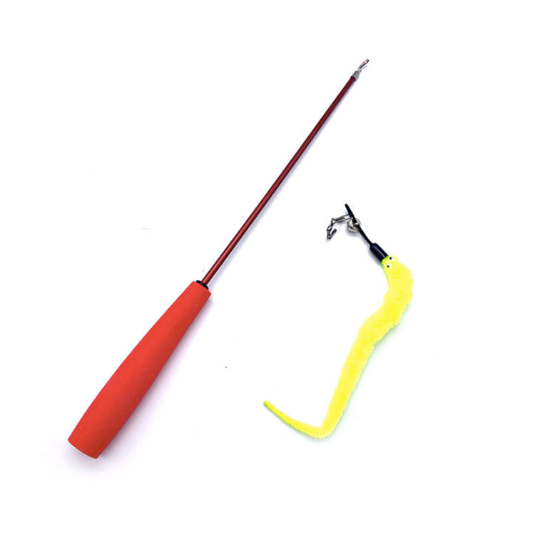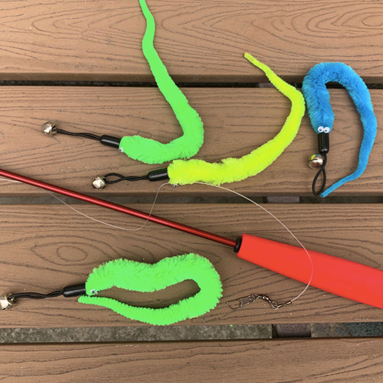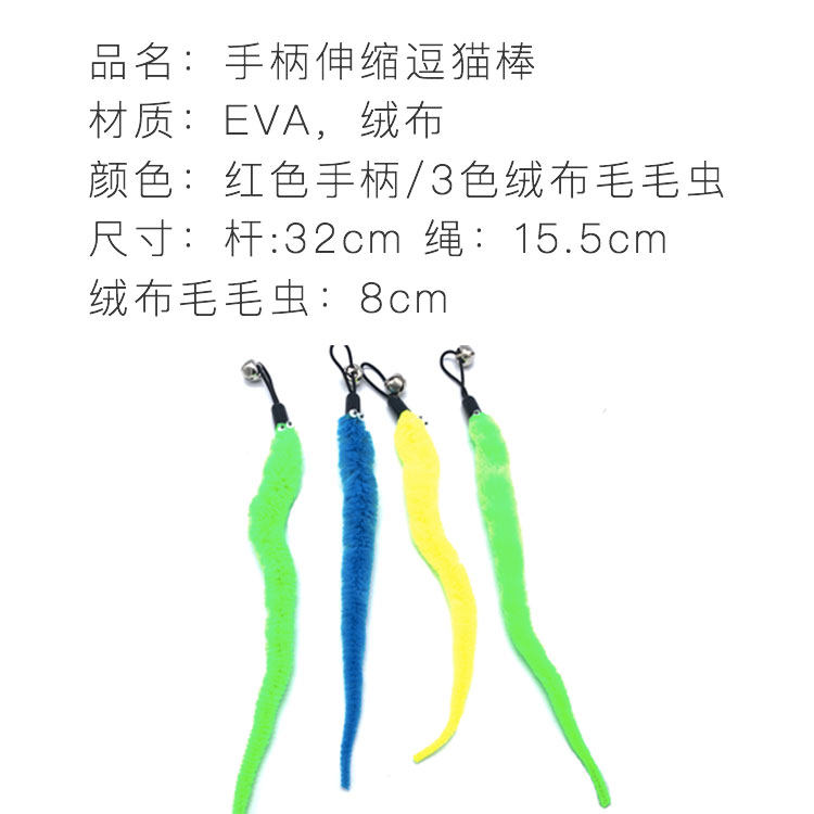 Self-hitting cat teasing stick retractable long rod bite-resistant kitten favorite caterpillar plush combination set cat toy
