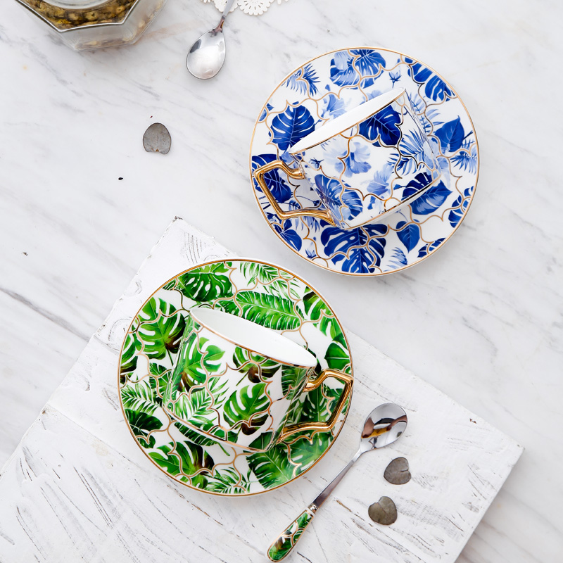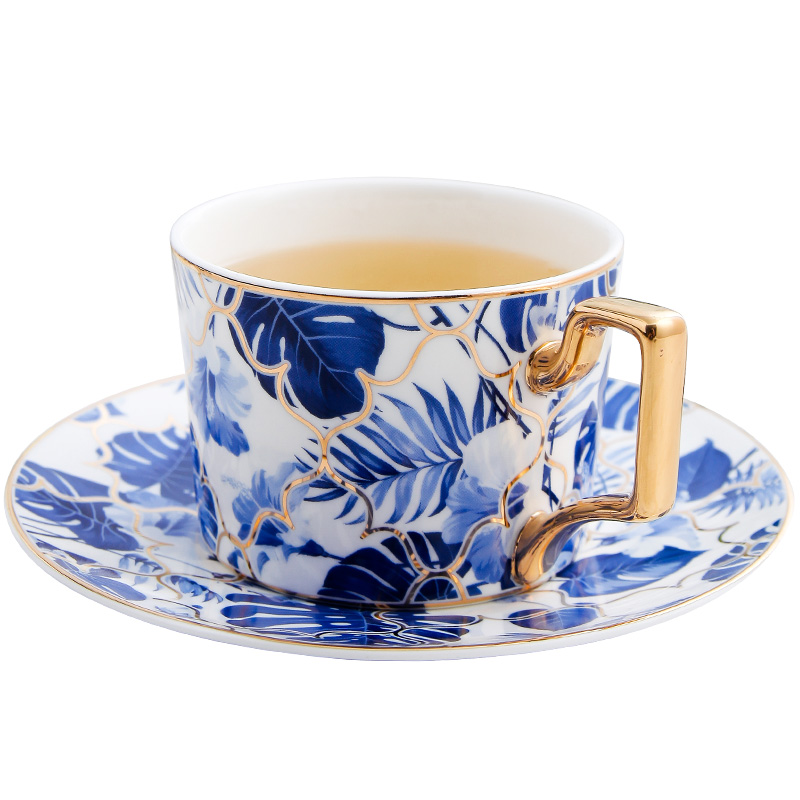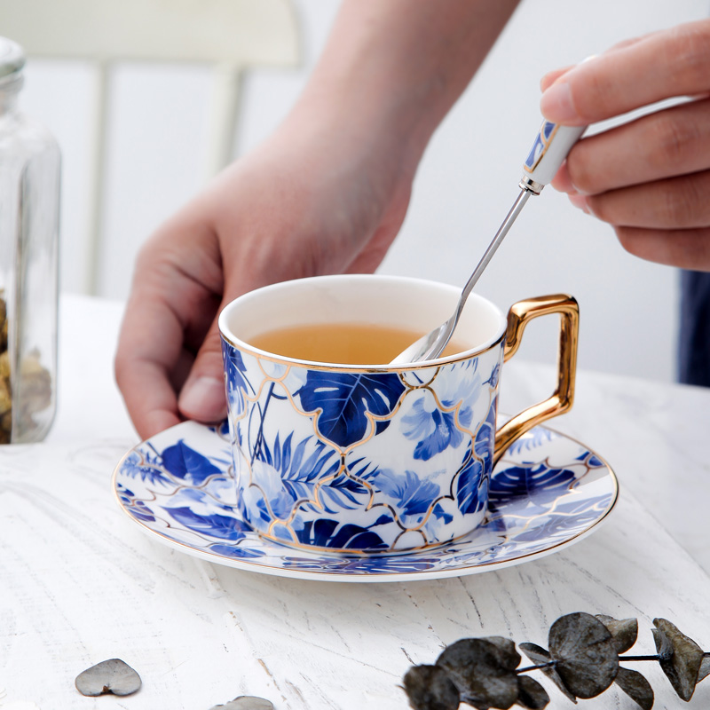 European-style bone china coffee cup and saucer set small luxury British ceramic gold-painted high-end black tea cup afternoon tea flower tea cup