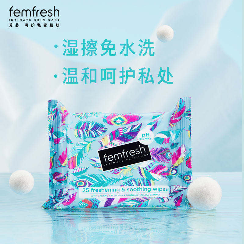 British Aromas FemFresh Women Private cleaning private room with wet tissue bags portable packaging 25 pieces of clothing