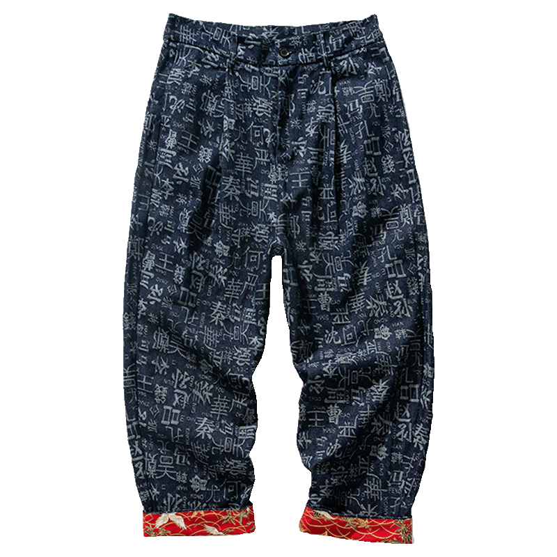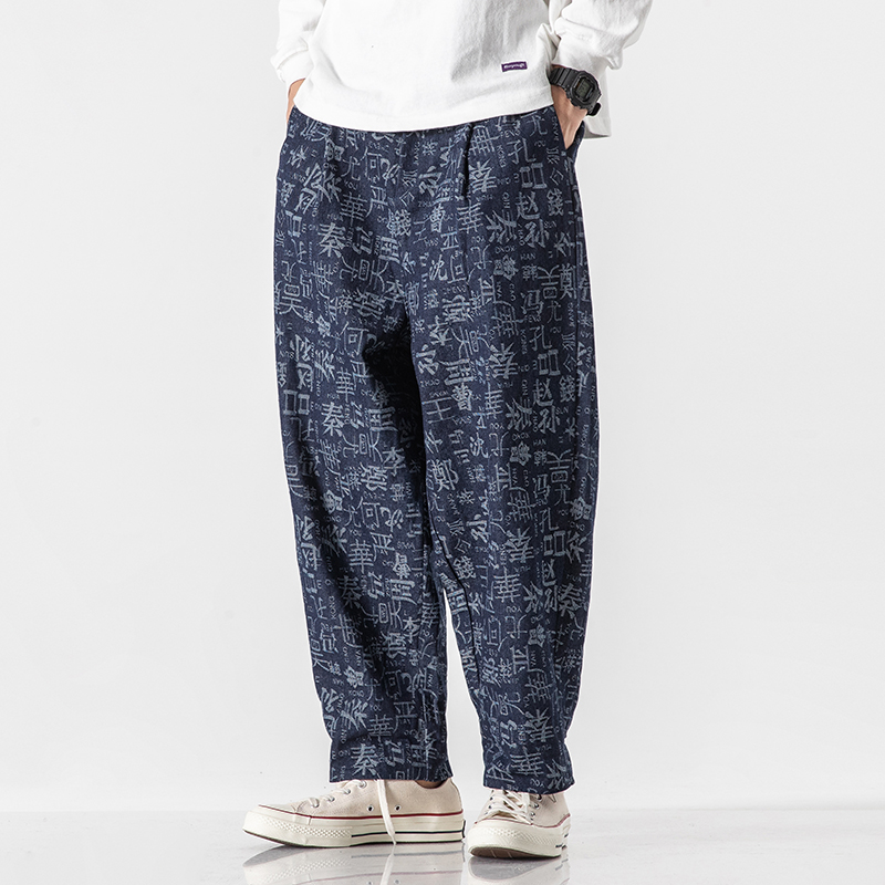 Day Tie Pants Student Retro Printed Jeans Man Straight Drum Loose Broadlegged Pants Youth Trend Big Size Casual Pants