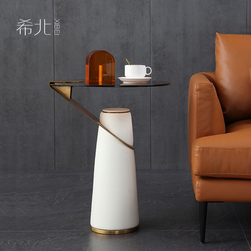 Italian minimalist rock slab side table designer style light luxury corner table modern minimalist glass high-end small coffee table