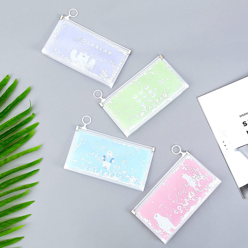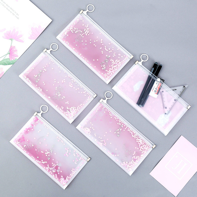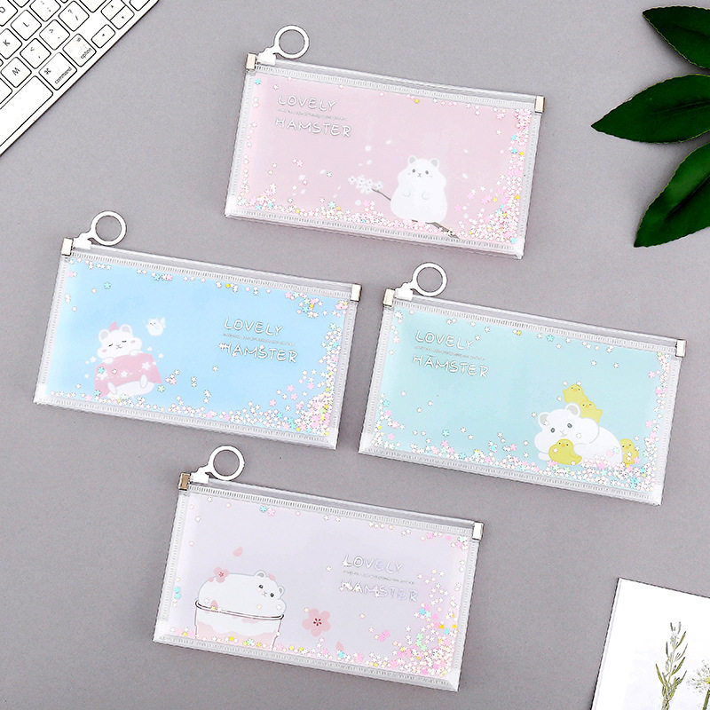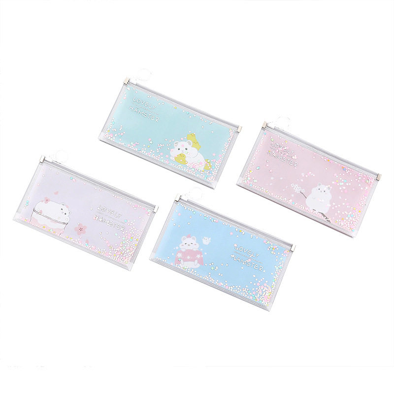 Net red girl sequin pencil bag Student large capacity zipper stationery storage bag Cute cartoon pencil bag custom logo