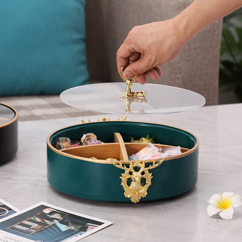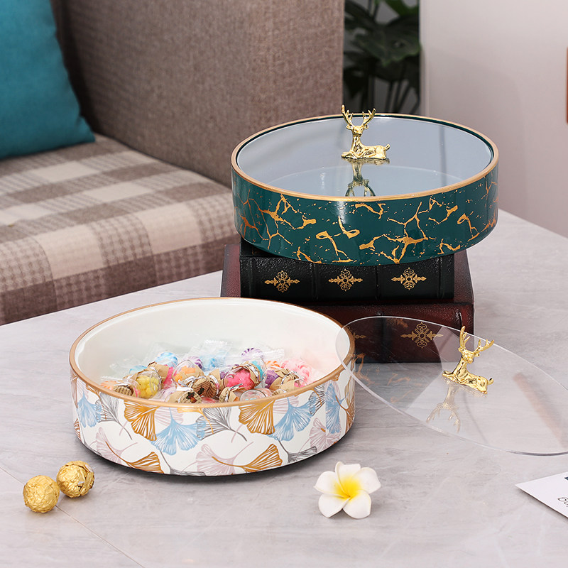 Dark green deer head with lid dry fruit plate high-grade black deer head with lid dry fruit plate white full leaf with lid dry fruit plate dark green full gold pattern with lid dry fruit plate golden diamond with lid dry fruit plate lake water orchid inlaid with lid