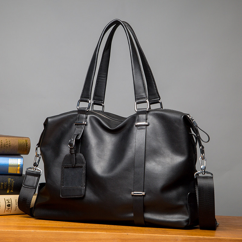 Hong Kong casual minimalist men's handbag travel bag genuine leather single shoulder slanted satchel business computer briefcase-Taobao