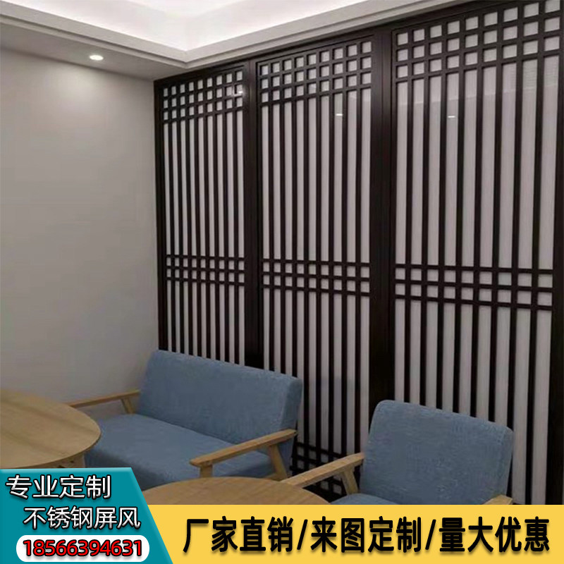 New Chinese Stainless Steel Screen Partition Custom Rose Gold Black Titanium Alloy Living Room Carved Hollowed-out Flower Lattice Metal Genguan