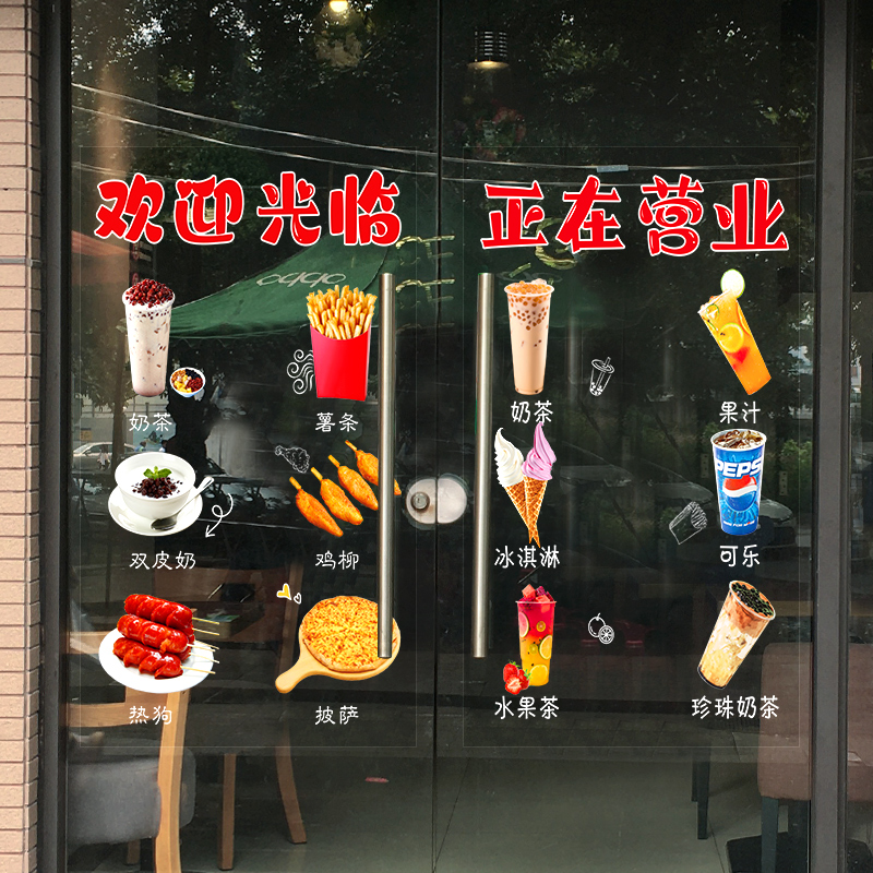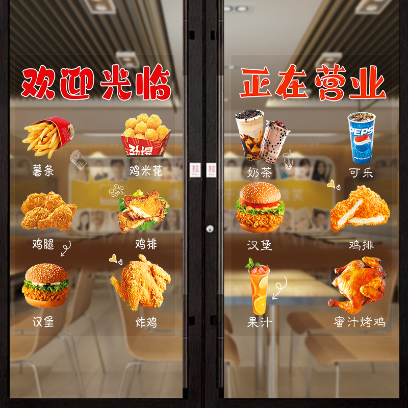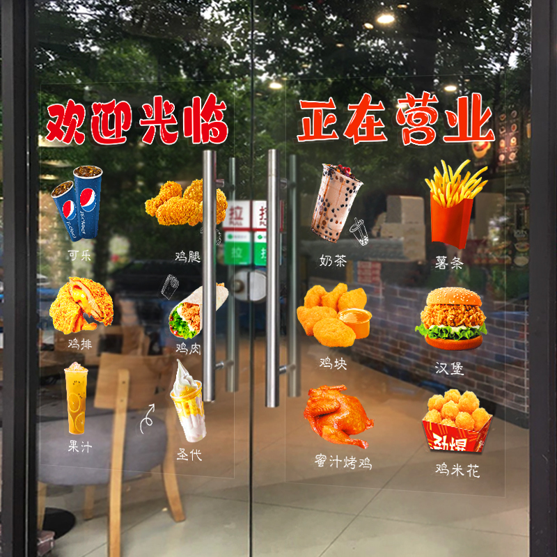 Burger Fried Chicken Glass Door Sticker Fries Chicken Rice Flower Shop Door Face Poster Dining Room Milk Tea Shop Creative Decorative Wall Painting