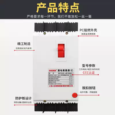 DZ15LE Leakage Protector 2P3P4P40A63A100A Leakage Circuit Breaker Three-phase Leakage Switch Protector