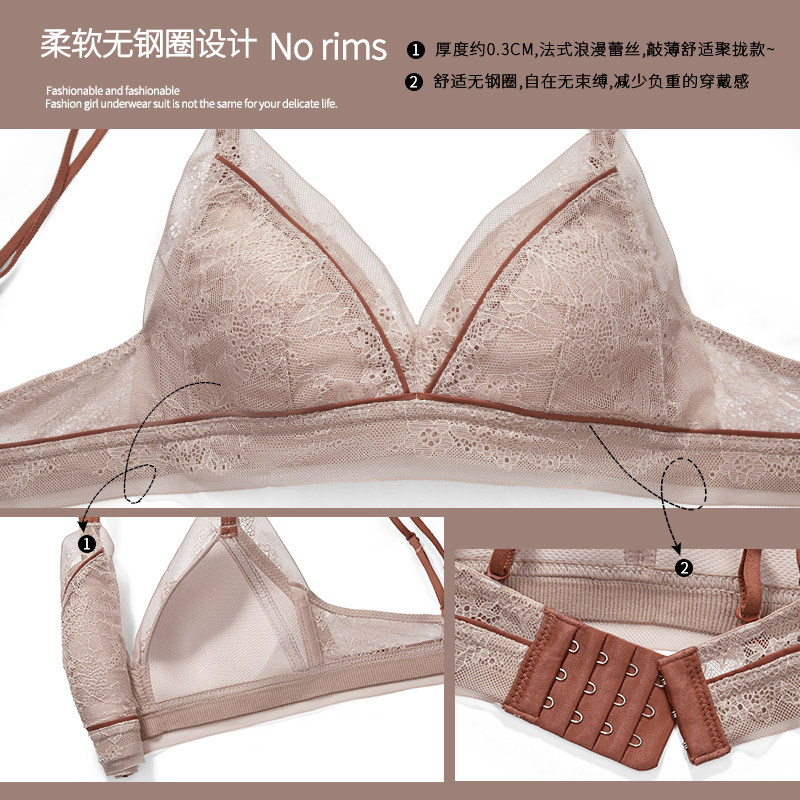 French underwear lady without steel ring summer thin, sexy backbra breathable soft bra suit
