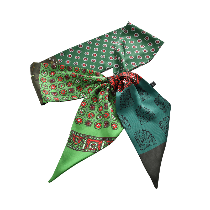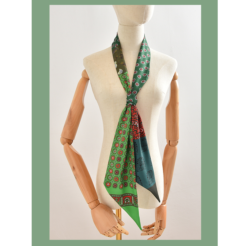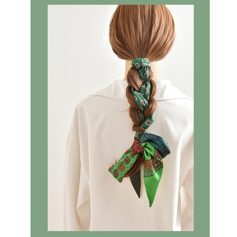 Thin and narrow green retro small silk scarf all-match tied bag hair belt belt long streamer decorative scarf scarf female