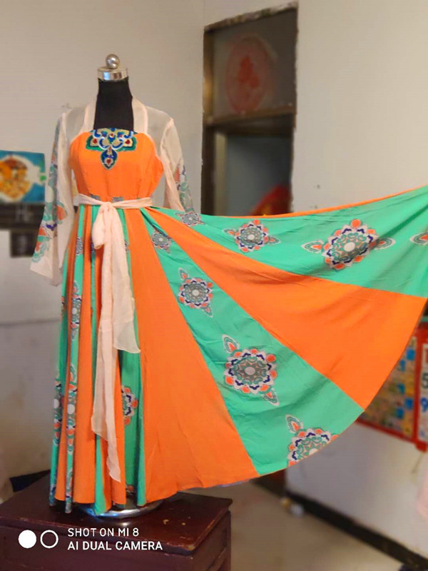 Orange Green Dress Plus Head Accessories New Don Print Original Group Dance Clothes