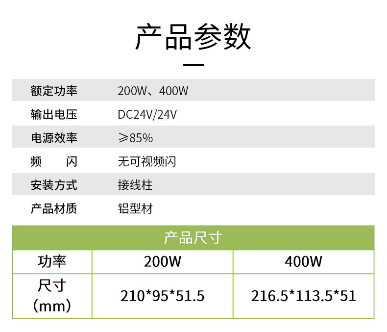 12V 12V 200W Rain-proof 12V 400W Rain-proof 24V 200W Rain-proof 24V 400W Rain-proof