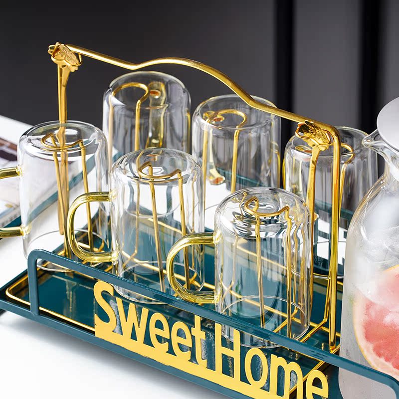 Clear Bunker Special Price Cold Kettle Glass High Temperature Resistant Cup Suit With tray Home Living room Light and luxurious cup Nordic