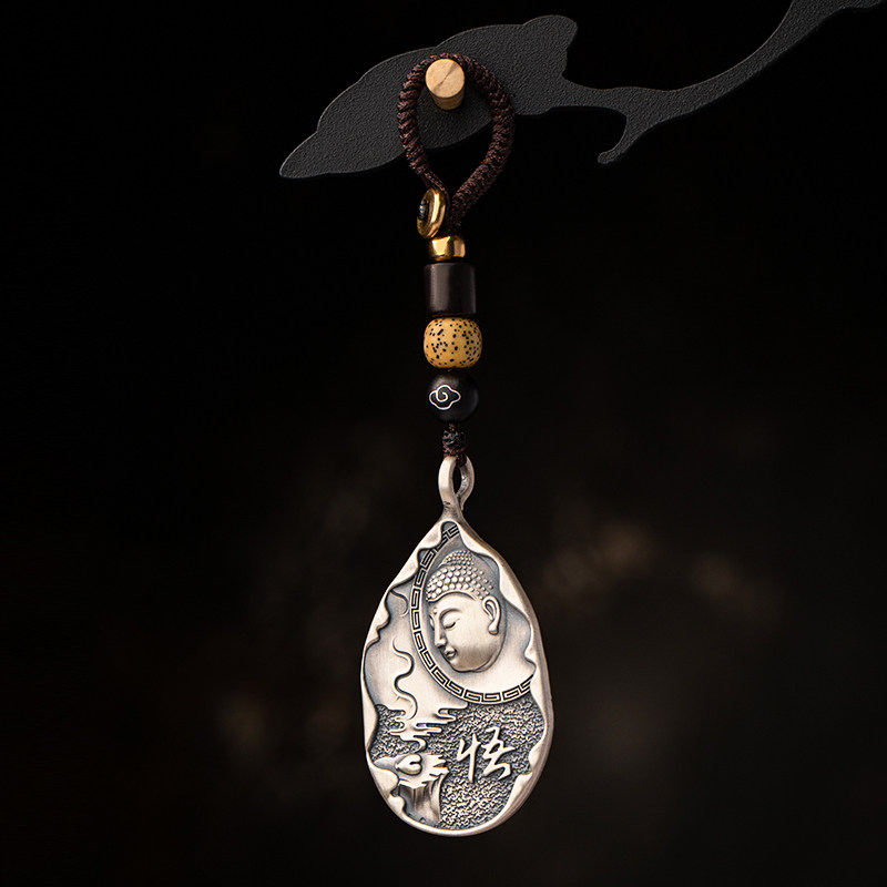 999 foot silver such as Buddha's brand car key buckle pendant handmade high-end pendant male and female bag ornament handmade