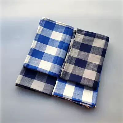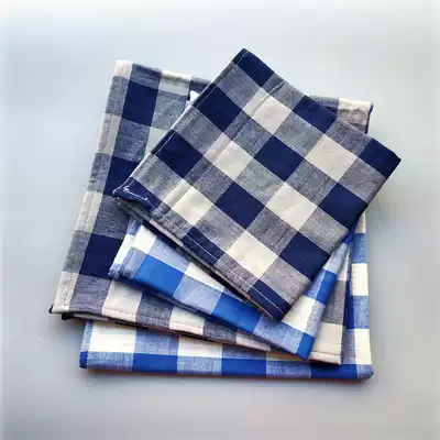 Men's blue plaid handkerchief with small square cotton simple style meal mat sweating double-sided pure cotton yarn small handkerchief