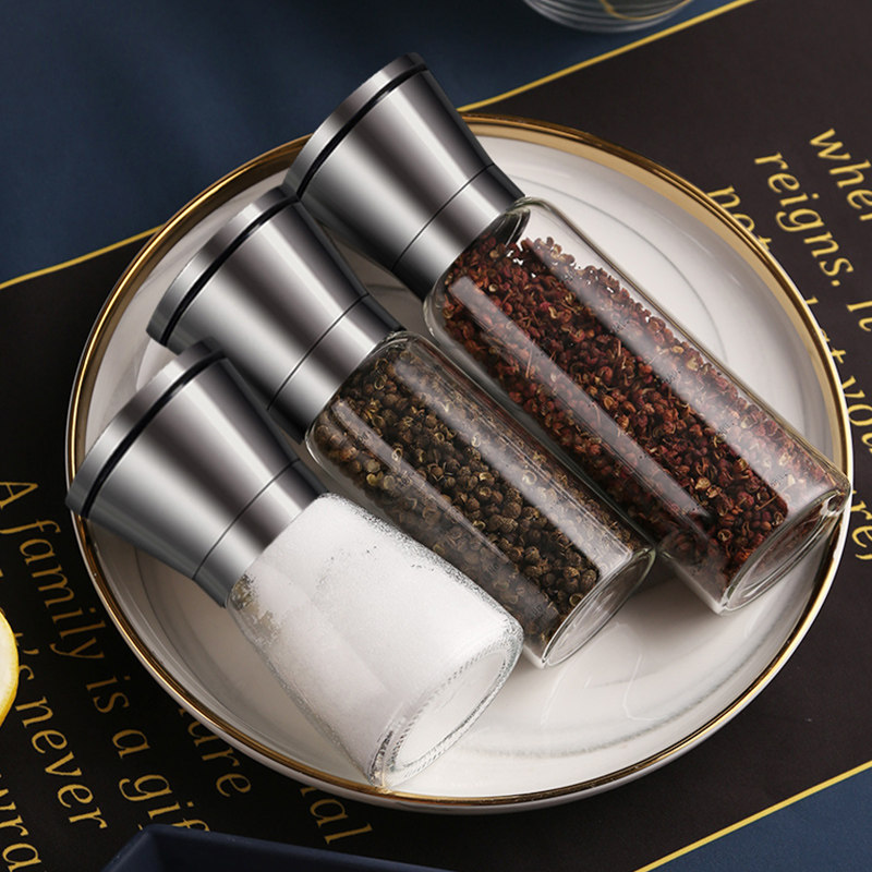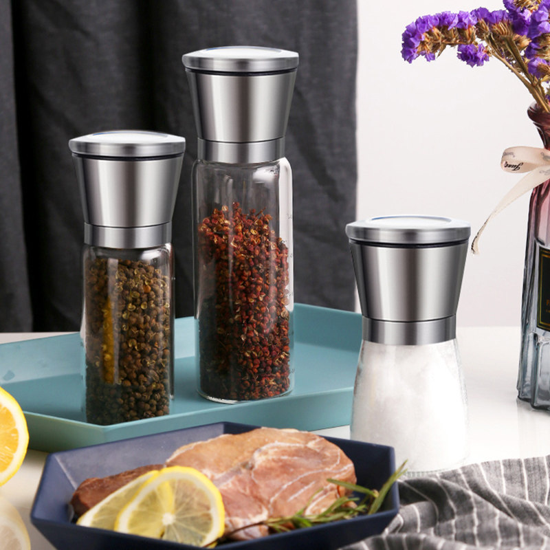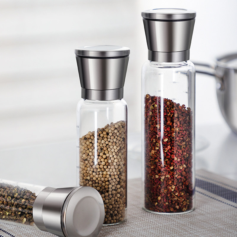Manual Black Pepper Grinder German Stainless Steel Seasoning Kitchen Glass Bottle Flowers Pepper Powder Milling Sea Salt Grain Home