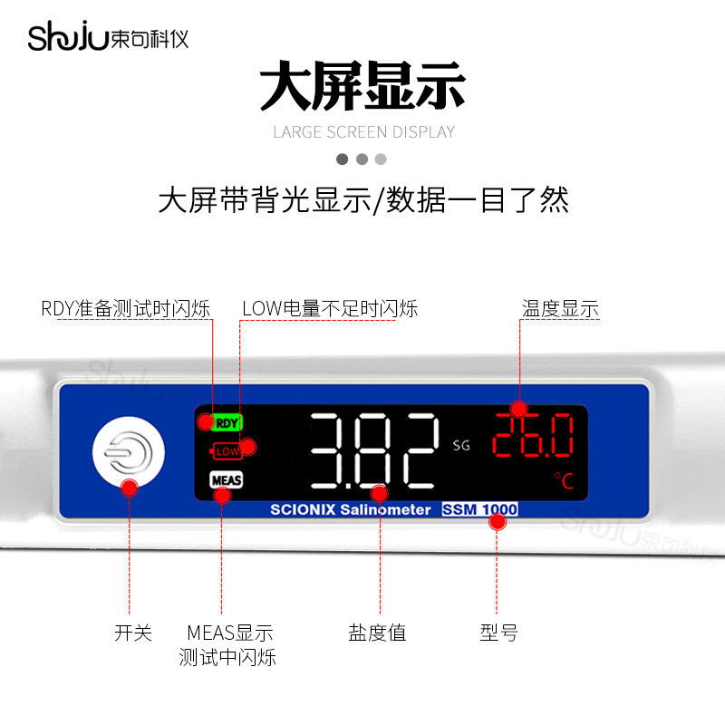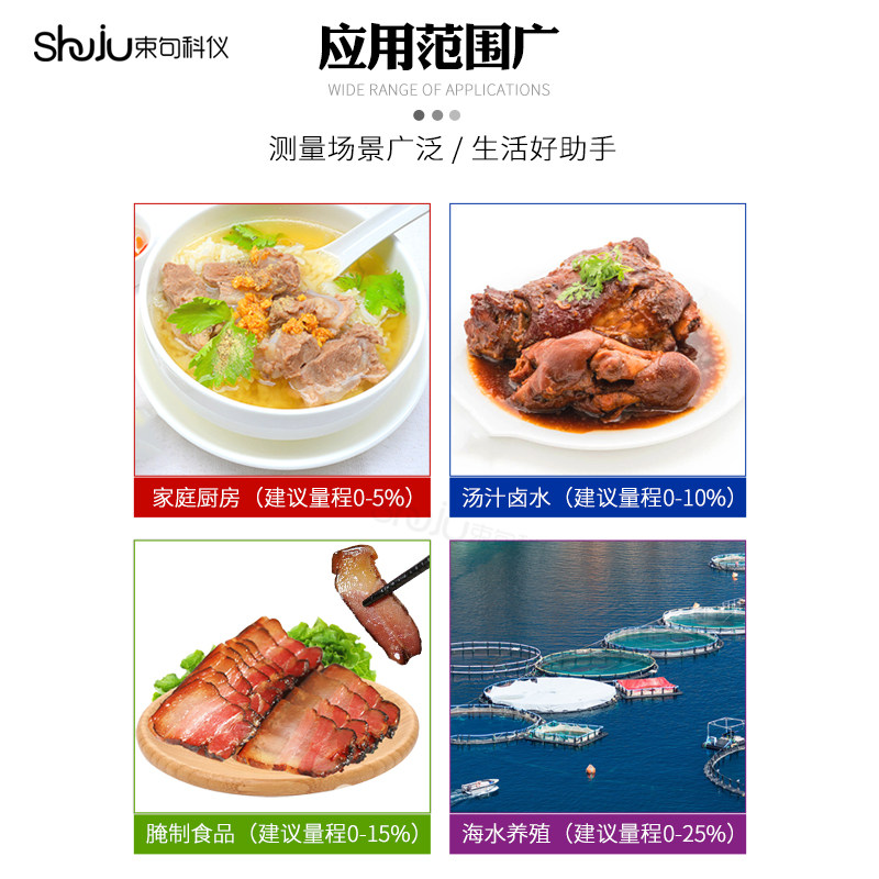 Salt meter 0-5% (monochrome screen) salinity of 0-10% (monochrome screen) salinity of 0-15% (monochrome screen) salinity of 0-25% (monochrome screen) salinity of 0-5% (color screen)