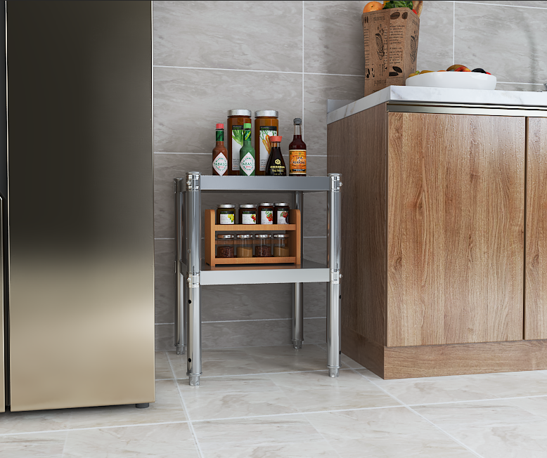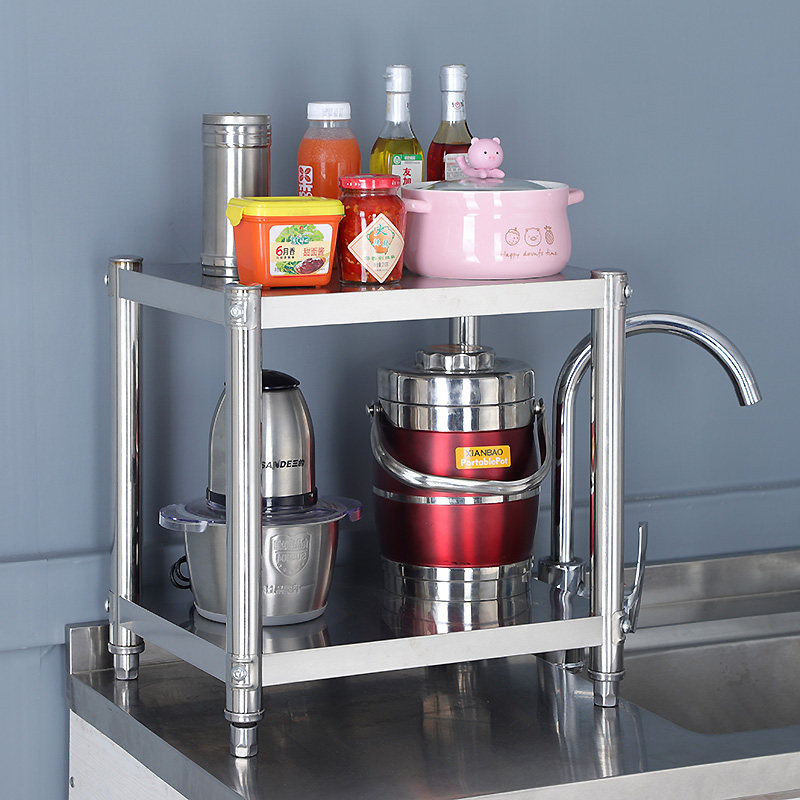 Kitchen Cabinet Table Noodles Two Layers Stainless Steel containing layer Shelf Seasoning Rack shelving Shelving Bowl tray Interlayer shelf