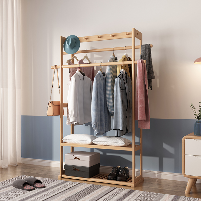 Solid wood clothes hat rack floor hanging clothes hanger bedroom simple net red containing shoe rack creative clothes hanging bag shelf