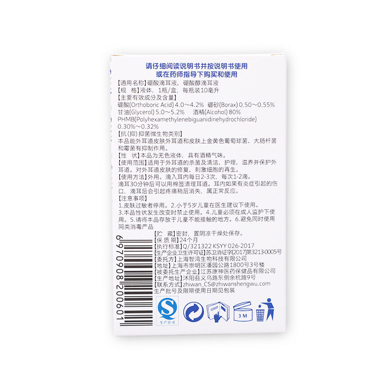 Queshengtang boric acid alcohol ear drops for children and adults with external auditory canal itching, ear crumbs, pus, chronic otitis media