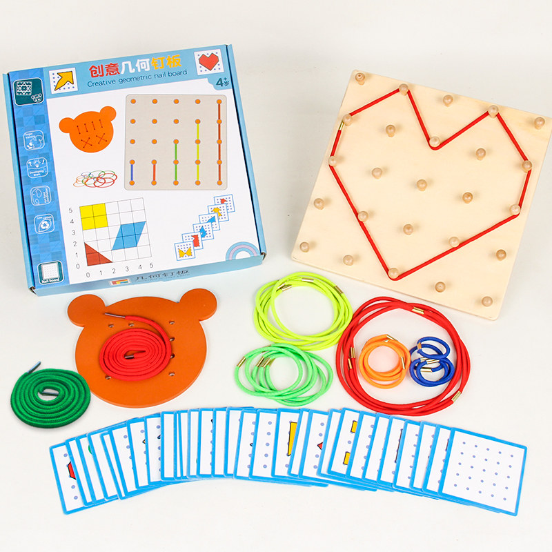 Mon's teaching tool geometric nail board Mathematical teaching tool wooden nail board full set of children's graphic early teaching puzzle toy