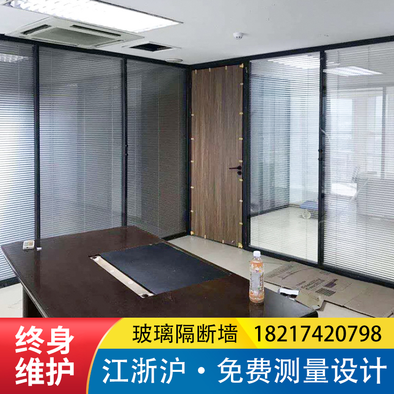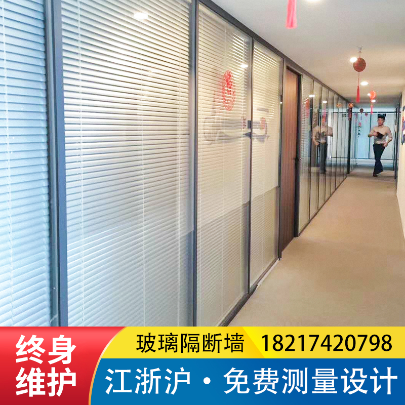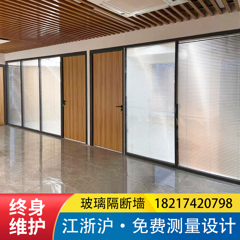 Jiangsu, Zhejiang and Shanghai office glass partition wall aluminum alloy wood finish tempered glass louver partition factory high screen
