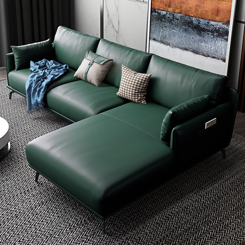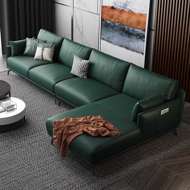 Italian leather sofa leather left and right corner living room combination modern minimalist dark green imperial concubine leather sofa