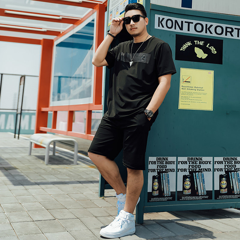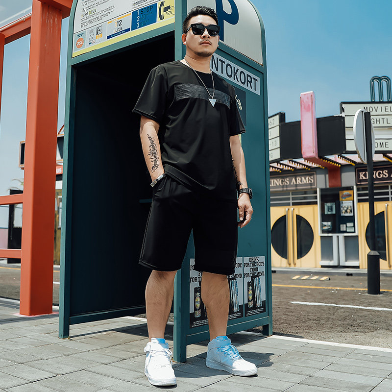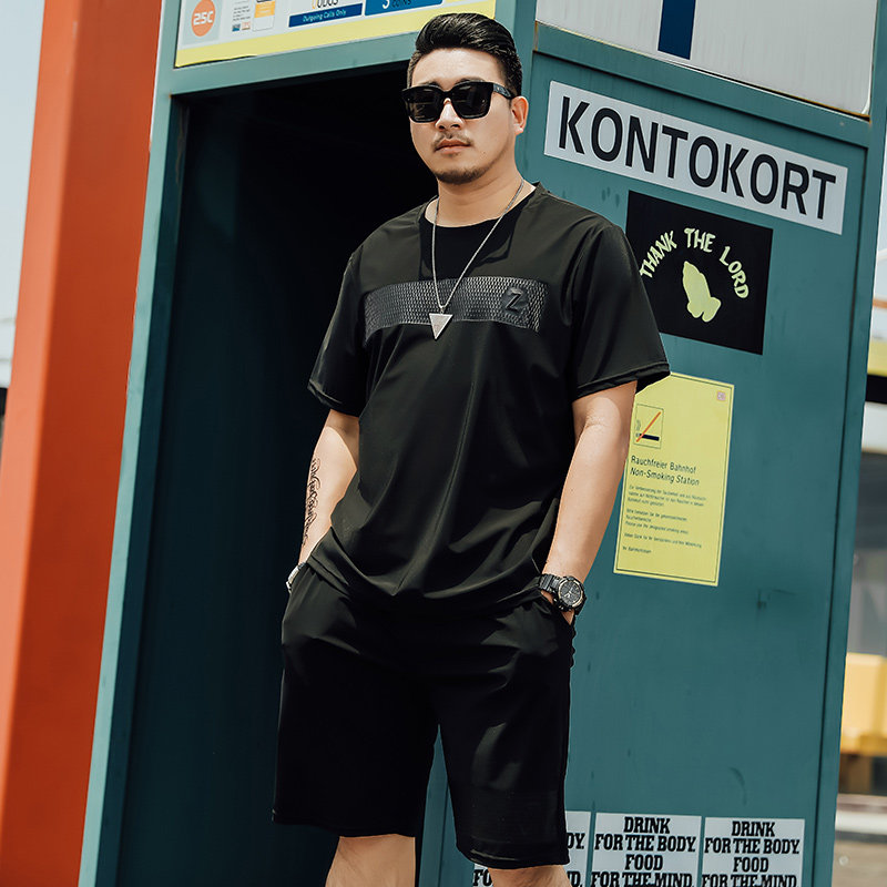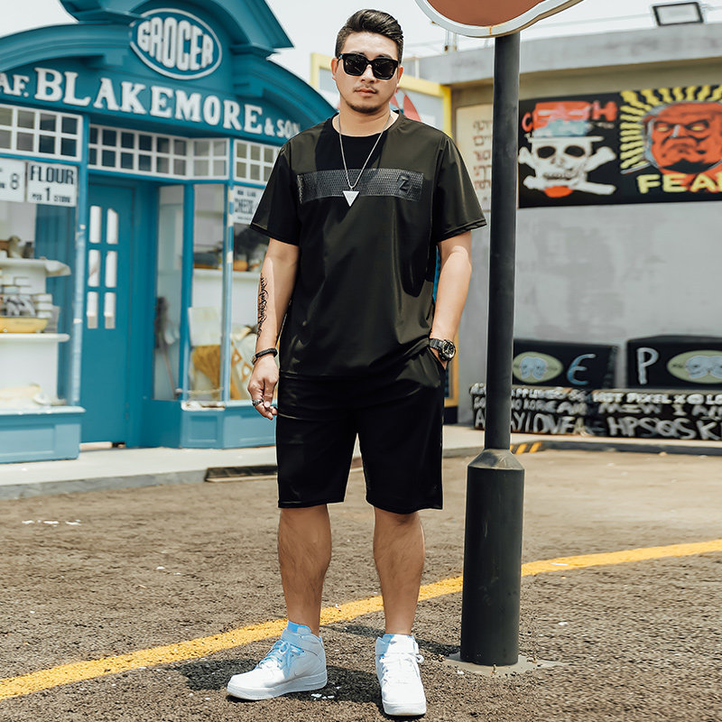 Fat Sub Summer Leisure Sports Suit Men's Loose Fats Plus Fattening Up Code Ice Silk Speed Dry Short Sleeve Shorts Suit