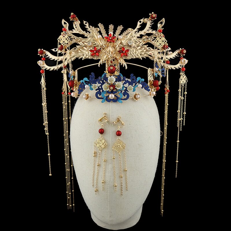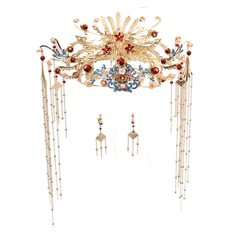 2020 new Chinese style bridal headdress Xiuhe hair accessories ancient costume Feng Guanxia accessories ancient Hanfu accessories Wedding accessories