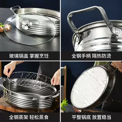 Steamed Fish Pot extra large household Fish Fish Pot 304 stainless steel steamed fish artifact large capacity large oval steamer