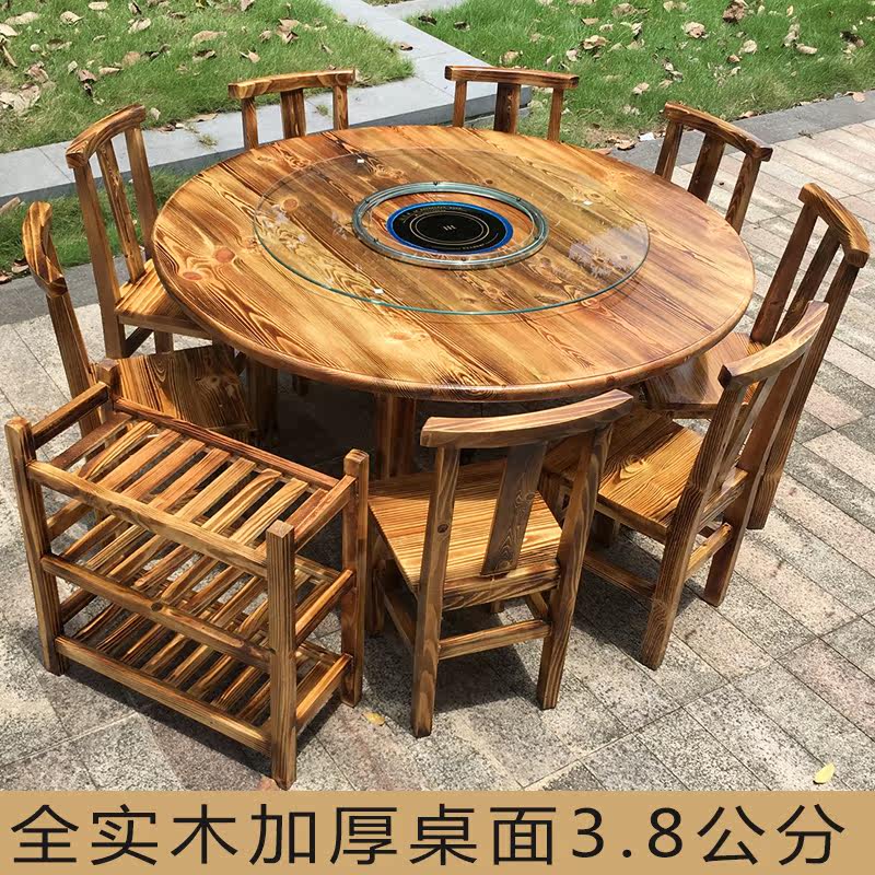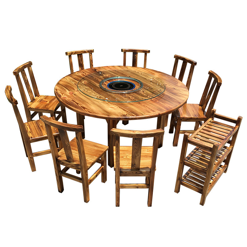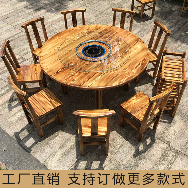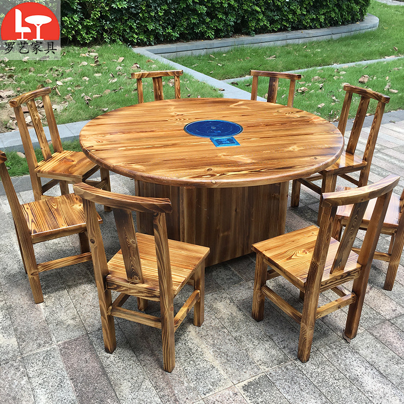 Carbonated Solid Wood Hotel Table And Chairs Hotpot Table Wooden Box Table Casual Farm Restaurant Dining Room Dining Room Round Table Induction Cookers
