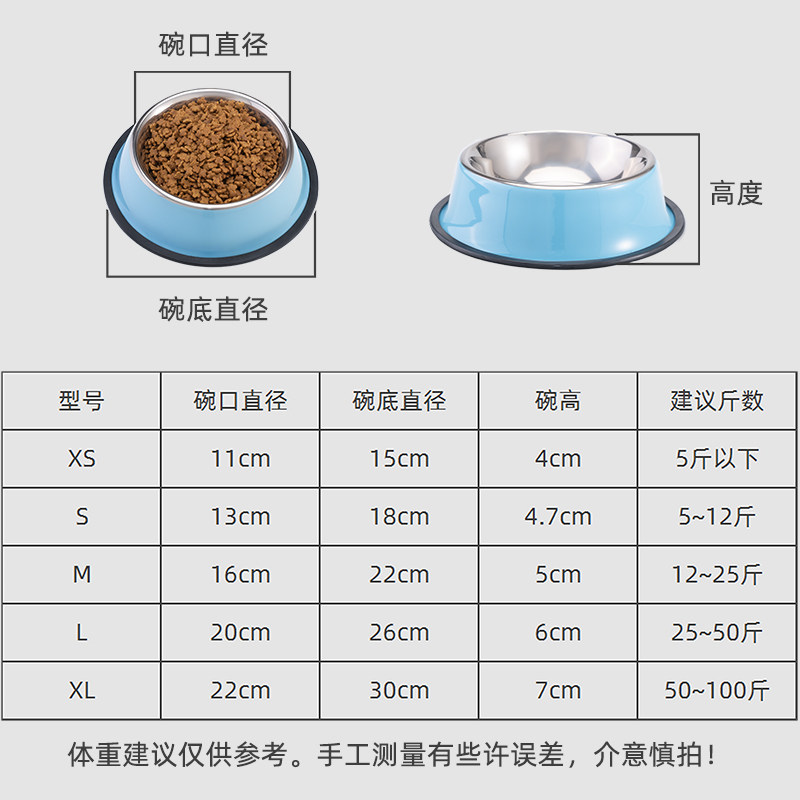 XS recommended within 5 kg (bowl bottom 15cm) S recommended 5-12 kg (bowl bottom 18cm) M recommended 12-25 kg (bowl bottom 22cm) L recommended 25-50 kg (bowl bottom 26cm) XL recommended 50-100 kg (bowl bottom 30cm)