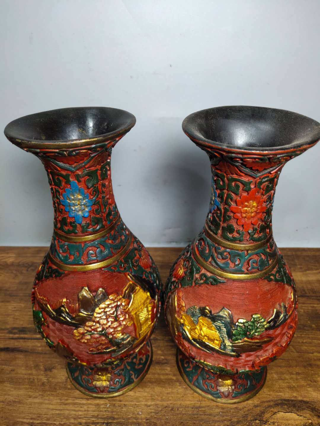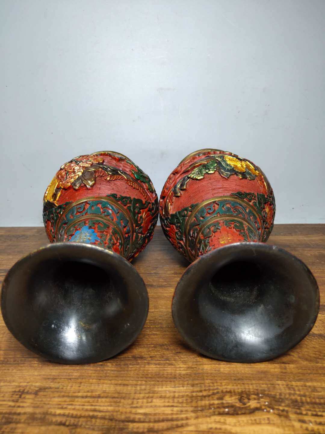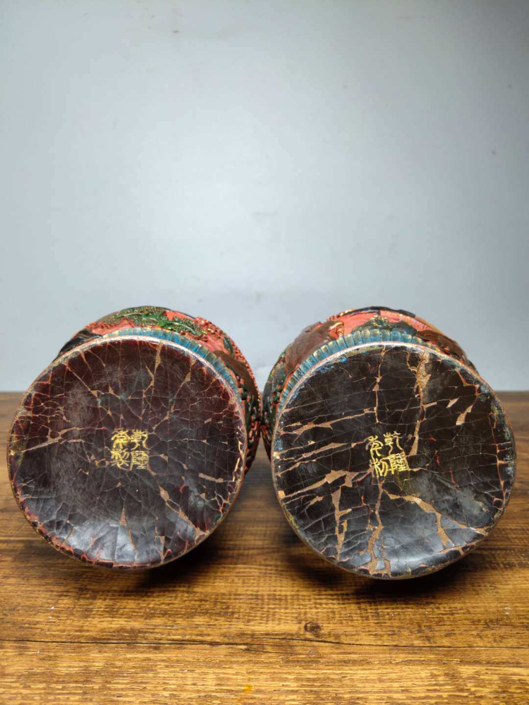 Tick Red Lacquer Bottle Pure Artisanal painted fluffy Wonderland vase pendulum a pair of antique folk collections old