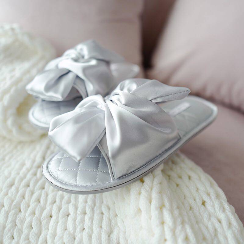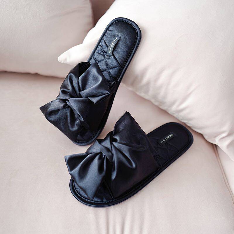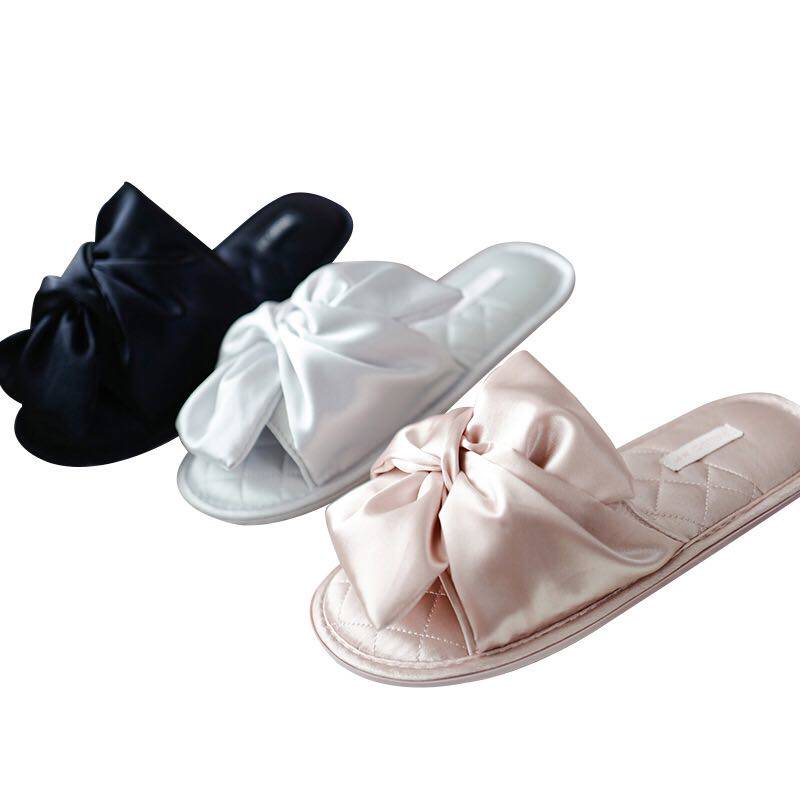 ins slippers ladies flat spring and autumn cool home indoor non-slip Korean bow satin home shoes bridesmaid