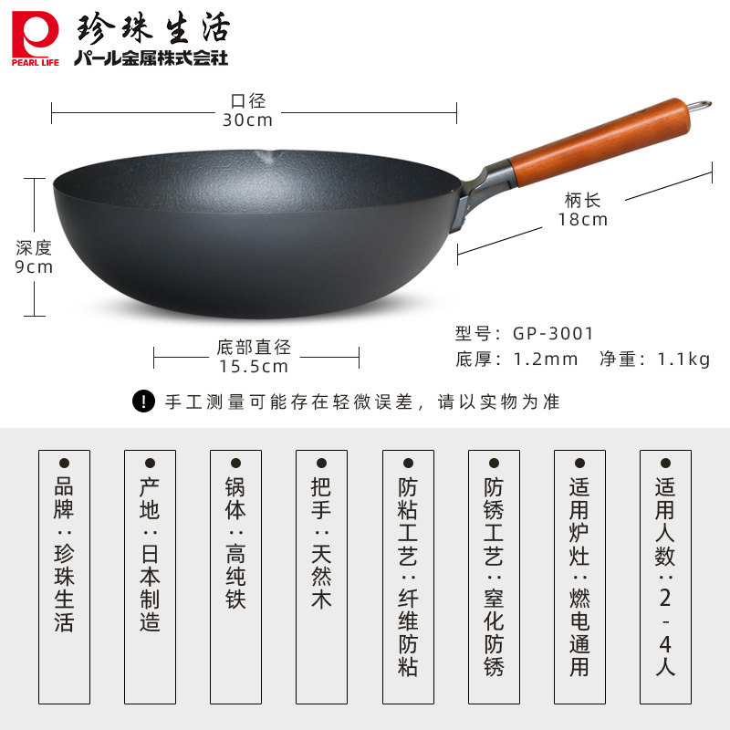 The new Japanese original imported 3001 pearl life uncoated stainless pan is not easy to stick to the household frying pan light