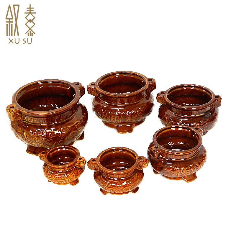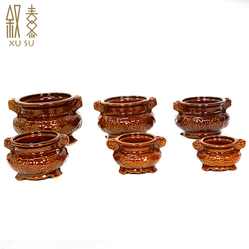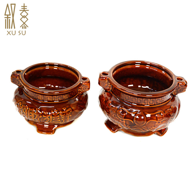 Ceramic incense burner dedicated to the landowner God of wealth ancestors lucky treasure Household worship God for Buddha three-legged stove inserted incense and candles supplies