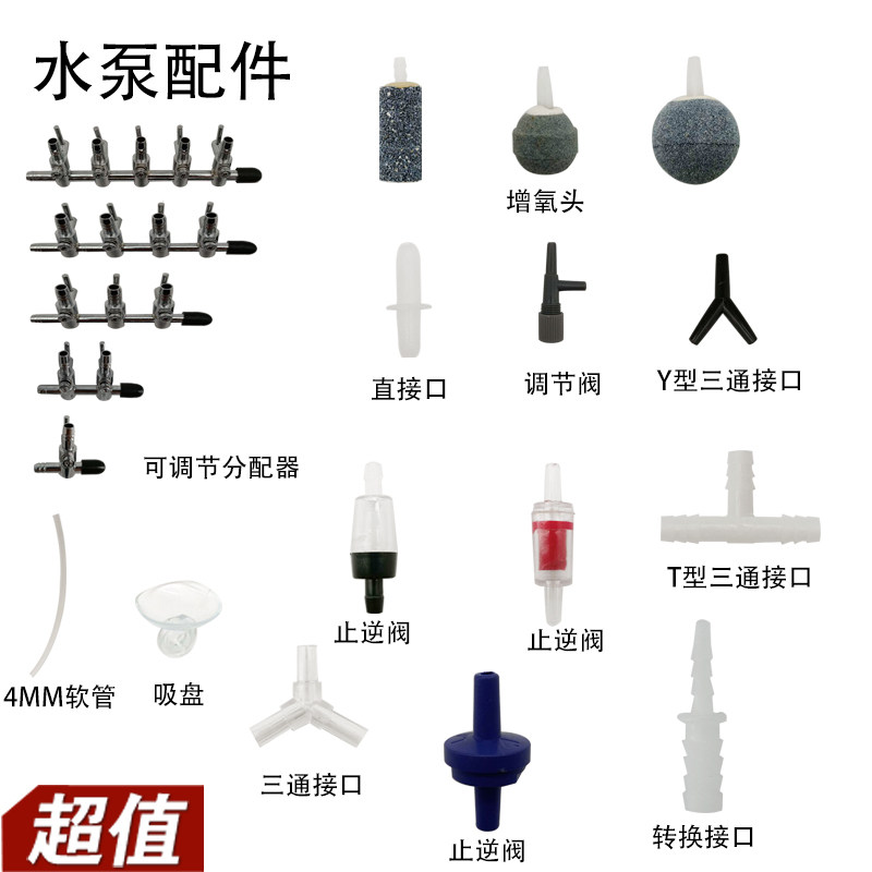 Cylindrical aerator control valve Y-type black three-way interface T-type 8mm three-way interface Y-type 4mm transparent three-way interface check valve(black) Check valve(Red)Check valve(blue)4mm hose