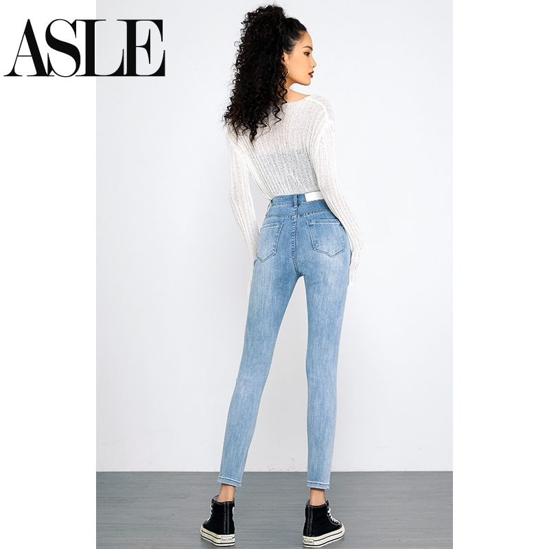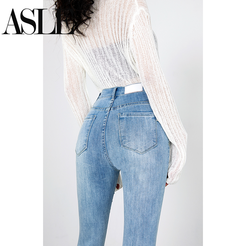 Light high-waisted jeans women high and thin 2021 Autumn New stretch hip tight nine-point pipe pants