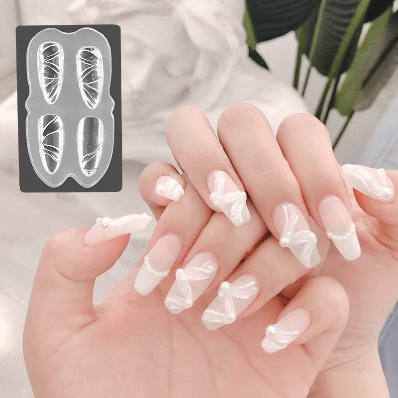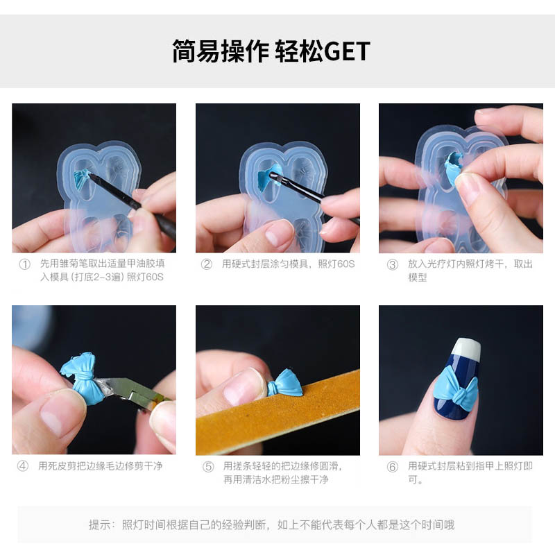 Small red book burst light French bow mold manicure 3D three-dimensional bow semi-sugar silicone abrasive easy to release