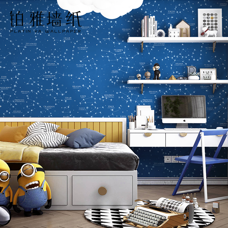 Blue children's room wall cloth boy bedroom girl starry sky constellation stars seamless wall cloth whole house 2022 new