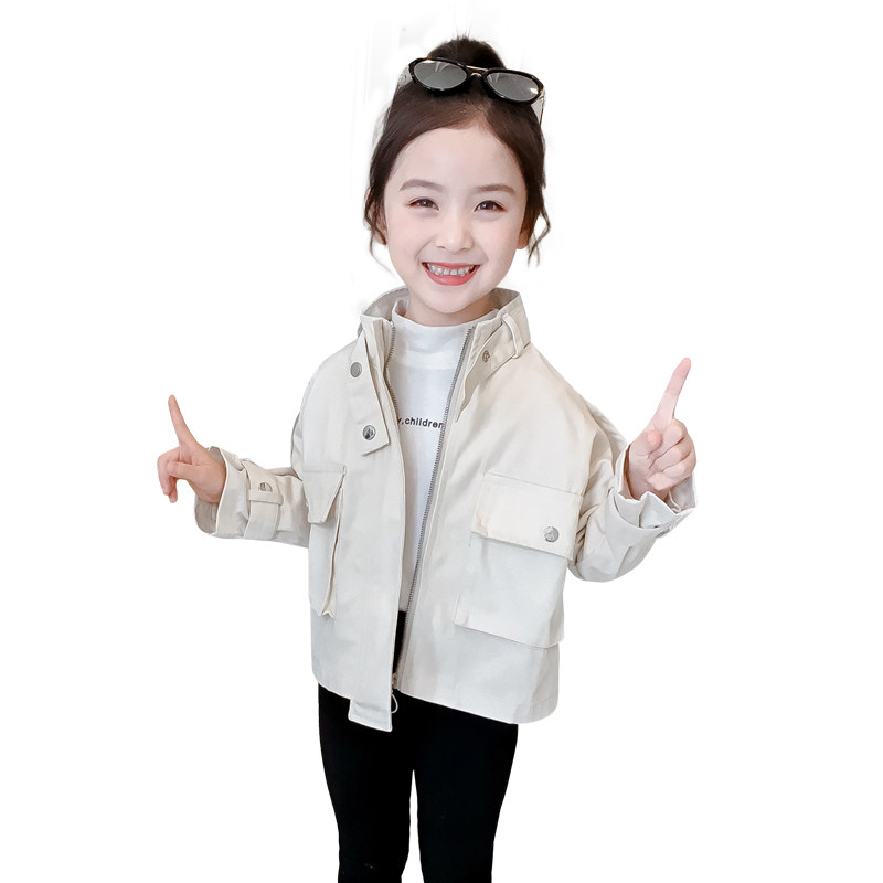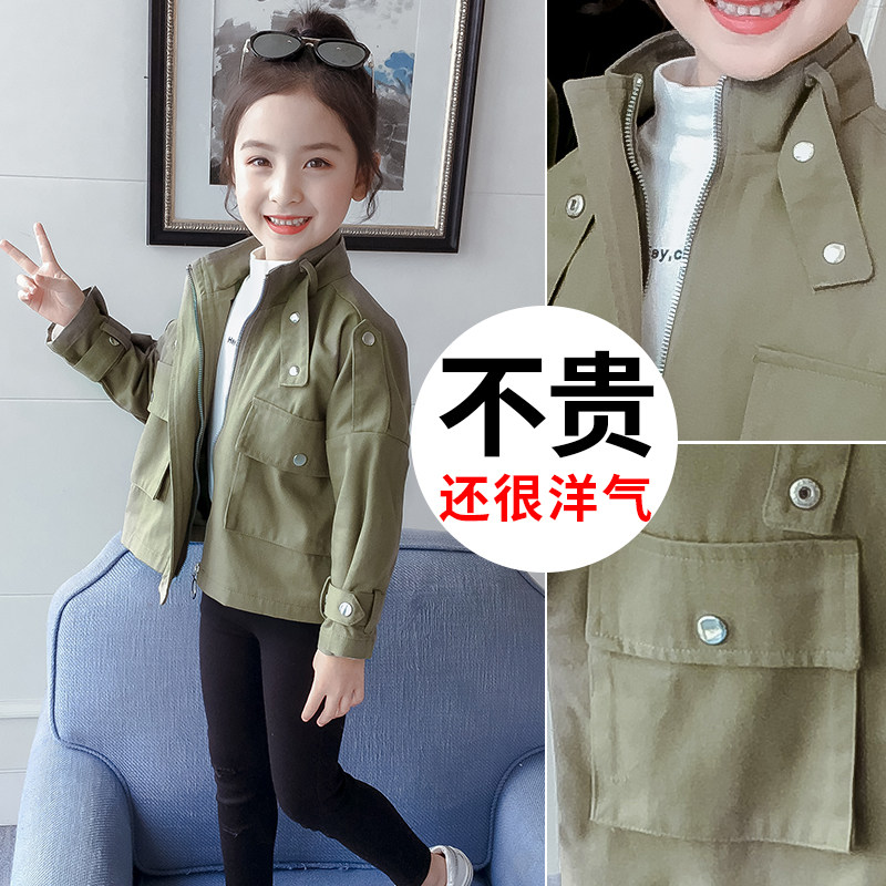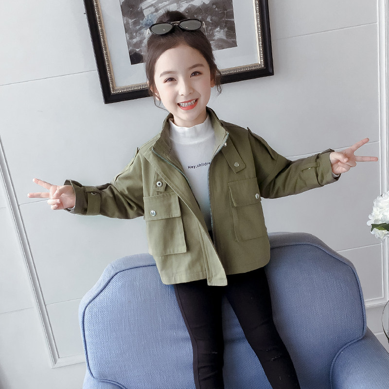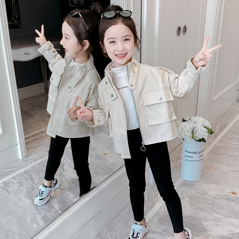 Girls' work jackets 2021 spring wear middle-aged children's casual outer wear tops children's stand-up collar jackets spring and autumn long-sleeved trendy