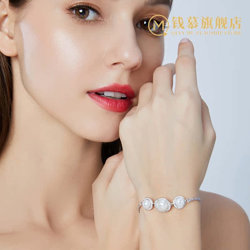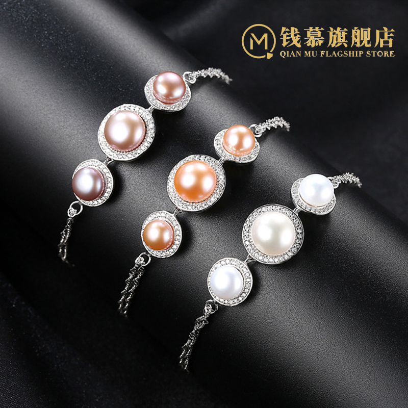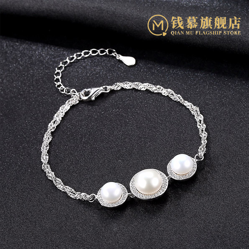 Qian Mu transfer beads natural pearl bracelet S925 sterling silver women's Korean version of the fashion joker bracelet bracelet