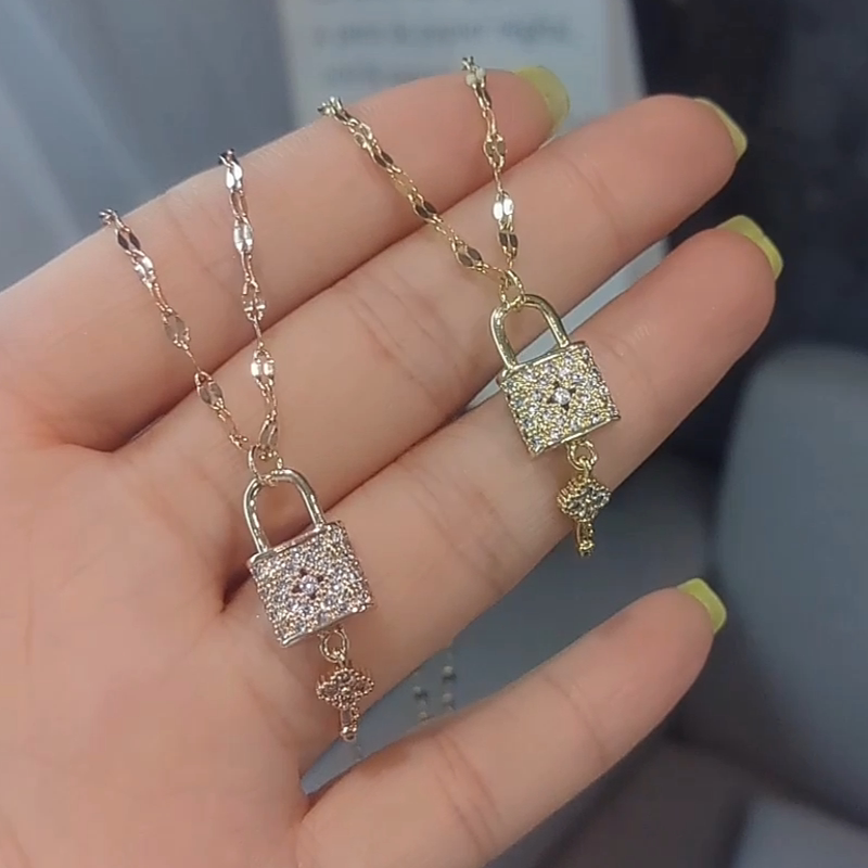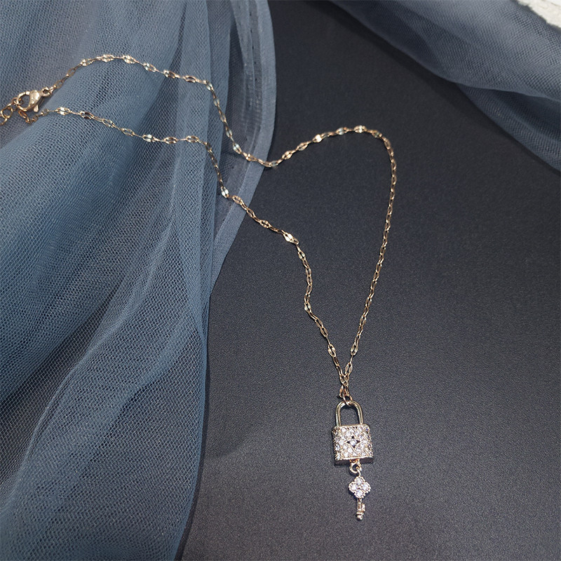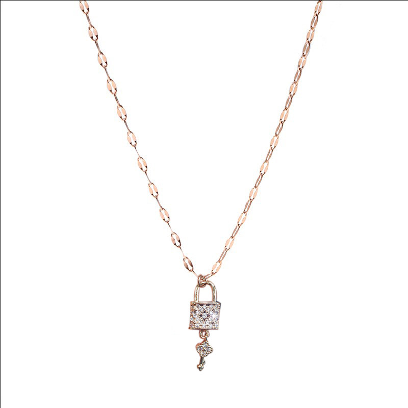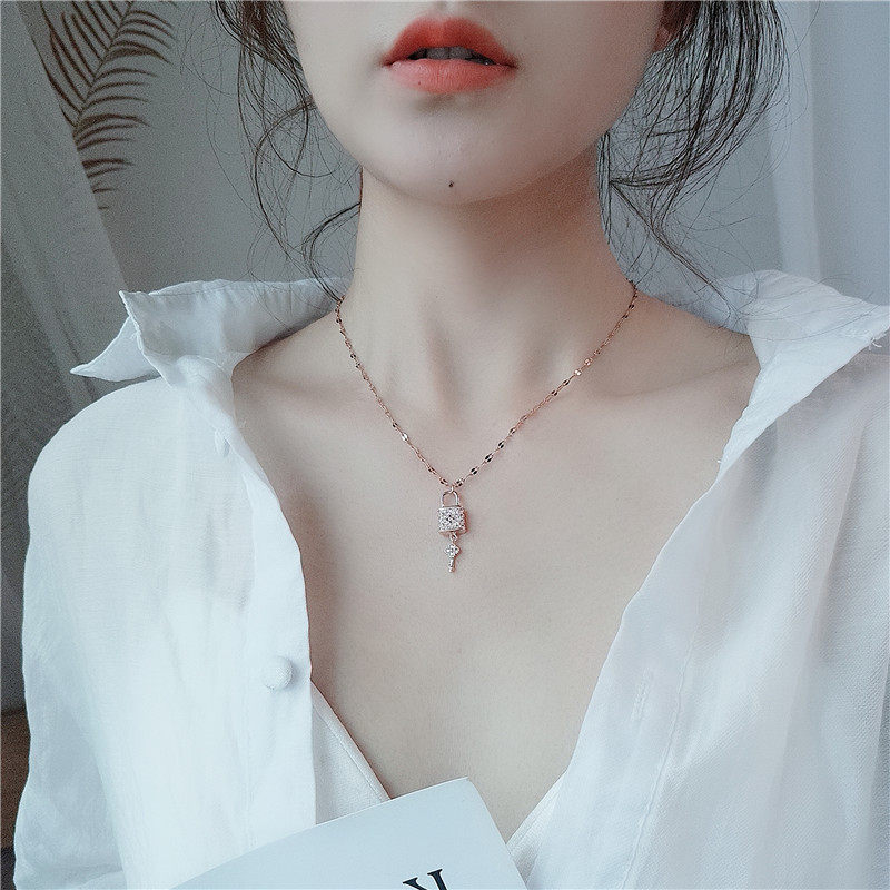 Titanium steel does not lose color lock the heart key pendant light luxury neckchain female collarbal chain in tide mesh red neck jewelry