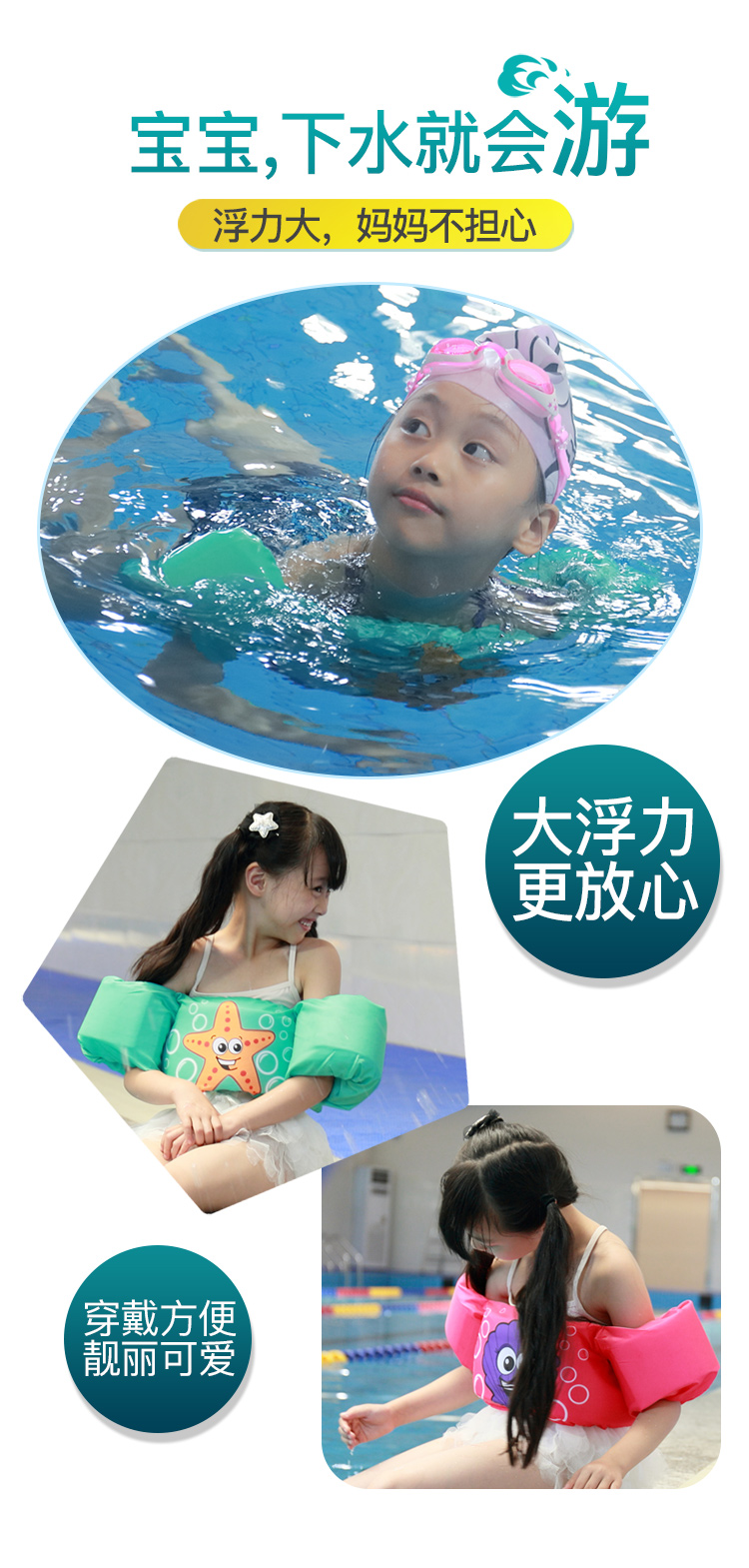 61 Kids Lifejacket Baby Swimming Gear Buoyant Water Sleeve Back Drift Swimsuit Boys Girls Arms Swim Ring