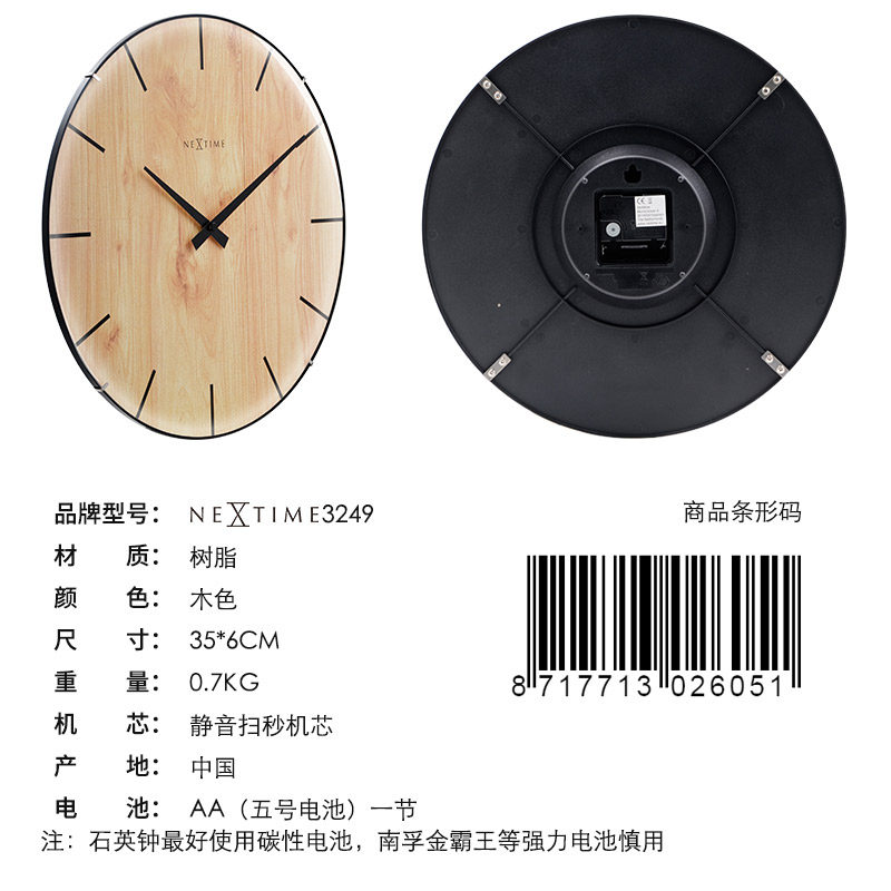 Dutch NeXtime standing days Nordic watches 14 inches Living room bedroom Creative wood grain personality mute hanging clock