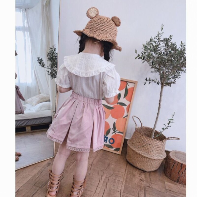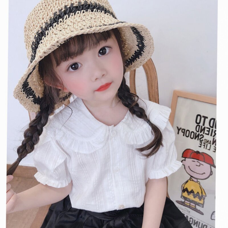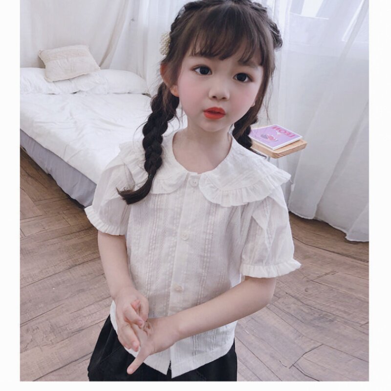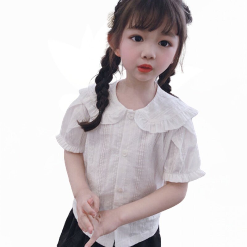 Girl White Doll Collar Shirt Little Girl Trend Foreign Pie Trendy Blouse Wave Baby Summer Child Short Sleeve Shirt