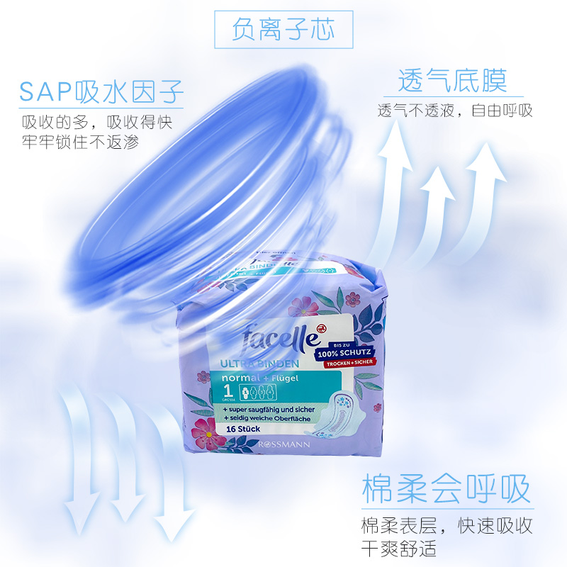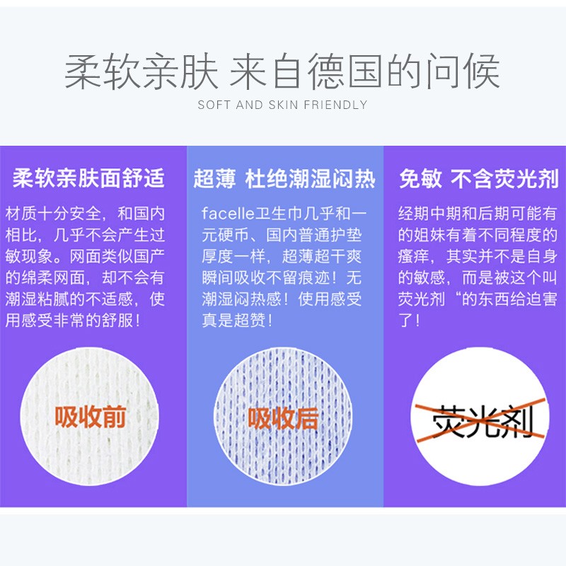 German facelle 3 4 5 drops water wing sanitary napkin day and night with cotton soft ultra-thin non-fluorescent aunt towel 6 packs